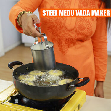 12 Cavity Nonstick Appam Patra + Steel Medu Vada Maker + Appa Chetty + Free Mini Coconut Scraper (1AP1MW5)