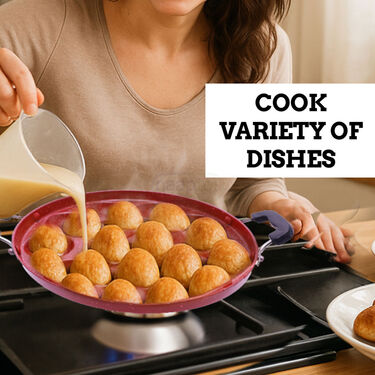 This 12 cavity Appam Patra lets you cook appams, paniyarams, mini uttapams, and more. Perfect for trying new snacks and serving tasty treats at home.