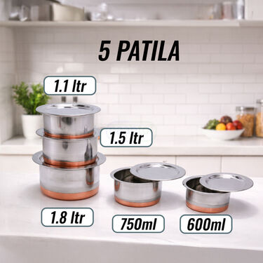 This premium 20 piece combo features 100% food grade stainless steel with a high efficiency copper coating for superior heat conductivity. The versatile set includes various sizes of Patilas and Handis designed for both heavy duty cooking and elegant table presentation. Equipped with heat resistant Bakelite handles and a rust free finish, these utensils ensure long lasting durability and safety. The addition of five specialized kitchen tools makes it a complete solution for modern households looking to streamline their meal preparation. It is the ideal choice for those seeking a royal dining experience while significantly reducing energy consumption.