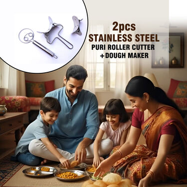 The 2pcs Stainless Steel Puri Roller Cutter + Dough Maker is a smart kitchen combo designed to make dough kneading and puri preparation faster and easier. Made from durable, food grade stainless steel, it helps you achieve smooth dough and perfectly round puris with less effort and mess.