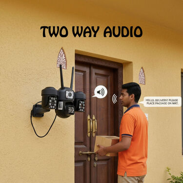 The 3 Lens WiFi Indoor & Outdoor Live CCTV Camera delivers powerful triple angle monitoring with crystal clear 6K HD clarity. Designed for shops, warehouses, and homes, it provides 360-degree coverage, smart motion detection, and real time two way audio for complete peace of mind. Built to perform indoors and outdoors, it ensures security without blind spots.