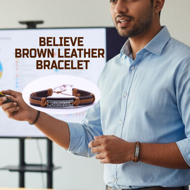 Upgrade your daily look with a bracelet that combines a rugged leather feel with a powerful message. This four layered accessory features a mix of smooth wraps and textured beads, giving you a complete, stylish look in one single piece. The "BELIEVE" charm is built into the design to keep you motivated and confident from morning to night. It is designed to be lightweight and comfortable, making it easy to wear whether you are at work or out with friends. With its easy to use clasp and free size fit, it is the perfect finishing touch for any mans wardrobe.