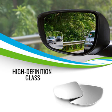 Enhance your driving safety with this set of frameless blind spot mirrors that provide a wider field of view and eliminate hidden zones. Easy to install with adhesive tape, they ensure crystal clear vision for confident driving on highways and city roads.