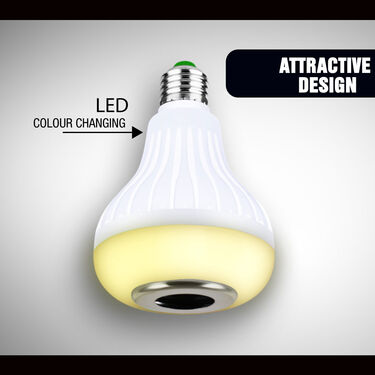 Meet our cool gadget a combo of colorful lights and music! It's a Bluetooth speaker and LED bulb in one. Change the 12W light to 13 colors with a remote. Play music wirelessly within 10m range, and it's super easy with the remote control. Perfect for parties or chill evenings. The sleek design fits anywhere. Get ready for a simple way to add fun to your space!