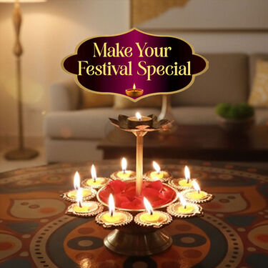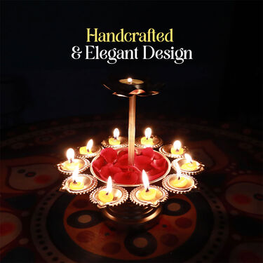 - 10 Diya Design + 1 Tea Light Holder - With ten intricately shaped diya holders and a central tea light spot, it offers a radiant and symmetrical display, perfect for festive celebrations and pooja rituals