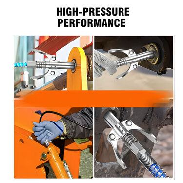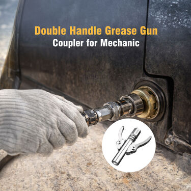 The Double Handle Grease Gun Coupler is designed for secure, leak free lubrication in automotive and industrial applications. Its heavy duty locking jaws, high pressure compatibility, and flexible hose ensure smooth operation even in tight spaces. Built for durability and efficiency, it makes daily greasing tasks faster and cleaner.