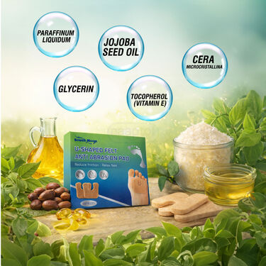 The Feet Comfort Protection Pad is a premium, self-adhesive solution designed to eliminate foot discomfort caused by friction and pressure. Crafted with soft felt material and enriched with skin-conditioning ingredients like Jojoba Oil and Vitamin E, these pads offer a gentle touch for aging or sensitive skin. The unique U-shaped design ensures targeted relief for calluses and sore spots, making it ideal for those who stand or walk for long durations. Lightweight and discreet, they fit seamlessly into any footwear, from formal shoes to daily slippers. This value pack of 48 pads provides long-lasting support, ensuring every step you take is cushioned and irritation-free.