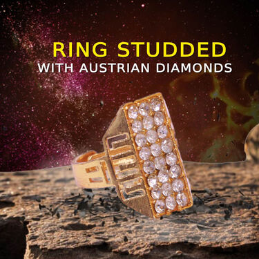 This premium mens set includes a golden watch, two chains, a designer bracelet, an OM pendant, and a diamond studded ring. The complete style package for any occasion.