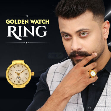 Introducing the Golden Watch Ring, a stylish accessory for any occasion. This versatile piece features an analog display with a designer metal strap. Crafted with a stainless steel case and a stretchable bracelet, it offers both durability and comfort. With water-resistant feature it's suitable for everyday wear. Powered by a reliable quartz mechanism, it ensures accurate timekeeping. Its sleek white dial and golden plating add a touch of elegance to any outfit. Complete with a slide clasp for easy wearing and a cardboard box for storage. Get yours now and elevate your accessory game effortlessly