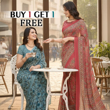 CLASSIS PRINTS FOR THE MODERN WOMAN -Graceful Floral Printed Saree Buy 1 Get 1 Free (2FPS)