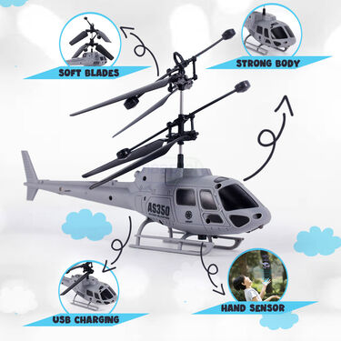 Experience the thrill of flying with this interactive helicopter toy. With hand sensor control, inbuilt LED lights, and a rechargeable design, itâ??s the perfect toy for endless fun and entertainment.