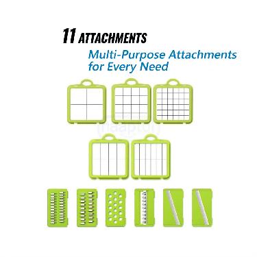 Multi Purpose Attachments for Every Need - This tool replaces multiple bulky kitchen items. From fine dicing to thick slicing, peeling, grating, shredding, and more , you can perform nearly every cutting task.