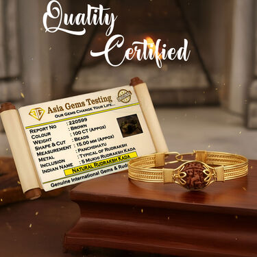 Experience the divine synergy of nature and tradition with the Panchdhatu 5 Mukhi Rudraksha Kada. Crafted with a blend of five sacred metals, this spiritual accessory is designed to balance the five elements of your body while providing a shield against negative energy. The authentic 5 Mukhi Rudraksha acts as a focal point for mental clarity, helping to alleviate stress and bring profound inner peace to your daily routine. With its beautiful golden finish and adjustable design, it serves as both a powerful protective talisman and a sophisticated piece of jewelry.