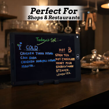 The Reusable LED Message Board is a smart and eco-friendly way to display notes, offers, menus, and reminders. Its anti-glare LCD screen ensures clear visibility without eye strain, making it perfect for long daily use. The pressure-sensitive writing surface feels like writing on paper and can be erased instantly with a single touch. Lightweight and ultra-thin, its easy to carry and place anywhere using the free stand provided. Ideal for shops, restaurants, cafés, and even home use, this board makes updating messages quick, clean, and cost-effective.