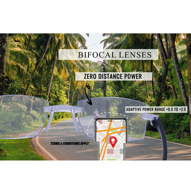 Experience enhanced vision for close up tasks with these rimless adaptive power bifocal reading glasses, perfect for reading and for any close detailed activity. The innovative bifocal lenses are easy to switch between near (+0.5 to +2.5 easily) and far (O POWER DISTANCE) vision without changing glasses, crafted with lightweight, durable materials and flexible hinges, they offer all day comfort without pinching or strain.