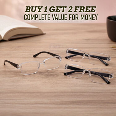 Grab rimless adaptive bifocal reading glasses that provide enhanced vision for near distant viewing without the need to switch spectacles. The smart lens design ensures smooth focus while reading, using your phone, or looking ahead comfortably throughout the day. Lightweight, easy to wear, and budget-friendly, these glasses give you complete everyday vision without the need for an additional costly pair.