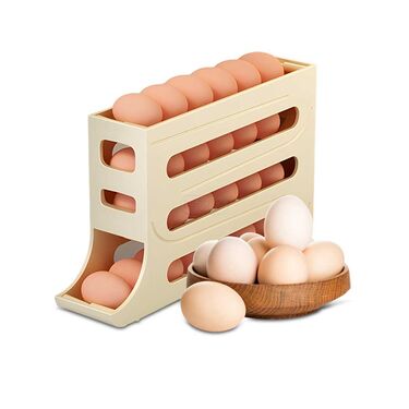 This 4-tier automatic rolling egg storage tray is designed to maximize refrigerator space while holding up to 30 eggs. Its clever 7-degree tilt design and open top ensure easy egg placement and automatic rolling to fill vacant spots. The large capacity yet compact design keeps your eggs fresh and neatly organized. With added railing protection and a deepened slide rail groove, eggs are securely stored, preventing breakage. Made from high-quality, durable material, this tray offers long-term usability and resilience. The space-saving design helps reduce clutter and keeps your kitchen tidy.