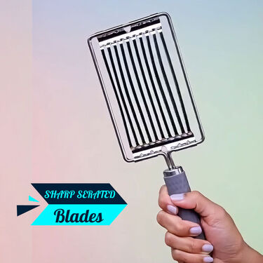 - Sharp Serrated Blades - The ultra sharp serrated stainless steel blades glide through both soft fruits and firm vegetables without crushing or tearing, delivering clean, neat cuts and keeping juices inside the produce.