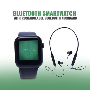 ALERTS ON WRIST, BEATS IN EARS - Bluetooth Smartwatch with Rechargeable Bluetooth Neckband (BCSW42)