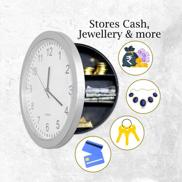 A smart wall clock with a hidden storage compartment to keep your valuables safe and discreet. Designed for easy access and perfect for daily essentials like cash, cards, and jewelry.