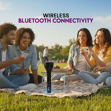 The Wireless Bluetooth Loud Speaker with Microphone is a versatile 2-in-1 device that combines a powerful speaker with a high-quality karaoke microphone. Connect effortlessly via Bluetooth to your smartphone, tablet, or laptop for seamless music playback and singing. Enjoy adjustable echo and voice effects for an authentic karaoke experience, whether at home gatherings, parties, or outdoor events. Its rechargeable battery ensures long hours of entertainment, while the portable and lightweight design makes it easy to carry anywhere. Perfect for music lovers who want clear, loud sound and fun vocal performances on the go.