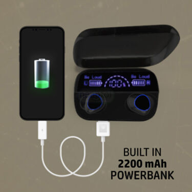 The 2200 mAh inbuilt power-bank helps in providing emergency power to your devices, ensuring you stay connected even when youâ??re on the move. This feature promotes peace of mind by offering a reliable backup when your deviceâ??s battery is running low. It enhances portability by integrating the power bank into your earpods, eliminating the need to carry an additional charging device